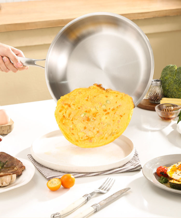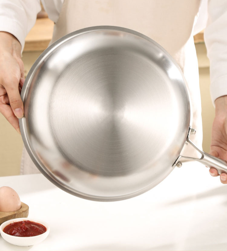 กระทะทอดสามชั้นสแตนเลสไร้สารเคลือบไม่ติดอาหาร